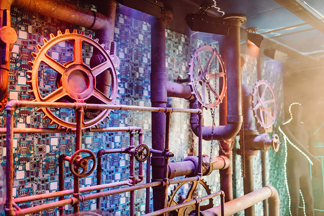 One-of-a-kind fabricated environments, corporate events, social events, scenic design production, event logistics, event management, custom decor, graphics, branding